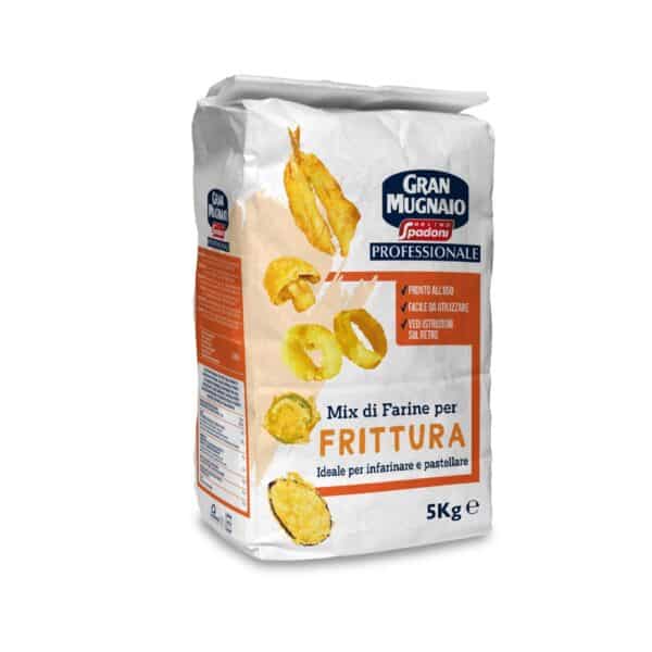 La miscela professionale per frittura assolve a un compito tanto fondamentale quanto difficile, spesso vero ostacolo per la riuscita di un ottimo fritto: l’aderenza perfetta della crosticina all’alimento. Questo particolare mix, a base di farina di grano tenero tipo “00”, fecola di patate, amido di mais e sale, è appositamente studiato per formare una copertura omogenea, leggera e croccante che è parte integrante del piatto, cui dona texture e sapore per una frittura perfetta. È un prodotto adatto a infarinare e pastellare, pesce, carne ma anche verdura e frutta e permettere ai clienti di gustare bocconi croccanti senza lo spiacevole inconveniente di vedere la crosticina esterna staccata dal resto dell’alimento.