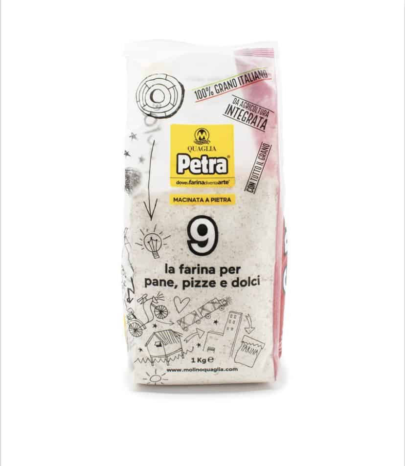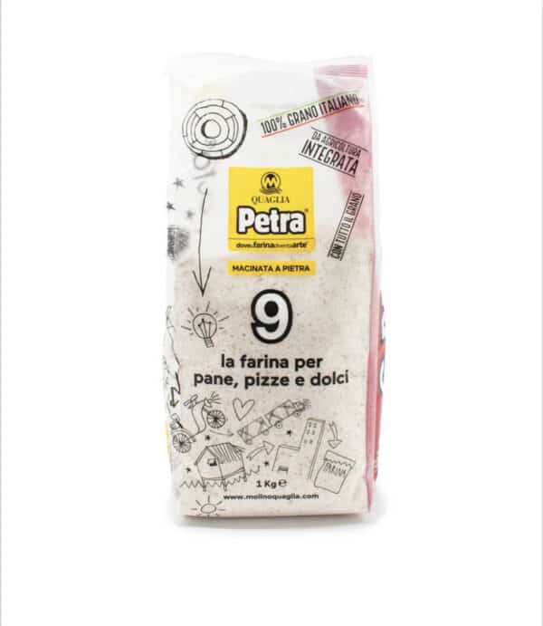 La Petra 9 è una farina di grano tenero 100% da selezione climatica, macinata a pietra con l’innovativo processo augmented stone milling per una selezione ottica perfetta del grano e la setacciatura e calibrazione controllata nell’impianto molitorio industriale più avanzato d’Italia. Una farina più completa fonte di fibre nobili e con un contenuto equilibrato delle parti diverse del chicco compreso il germe di grano.